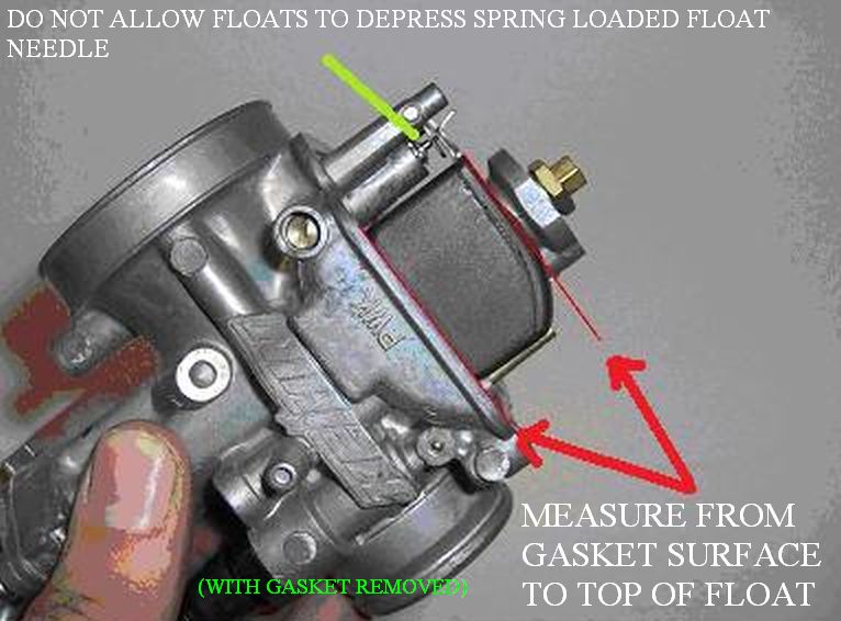 Use a vernier caliper or an accurate device to measure from the carb body to the top of the float block. Take off the gasket. When you push down on it it reaches into the float bowl and forces the float downward.