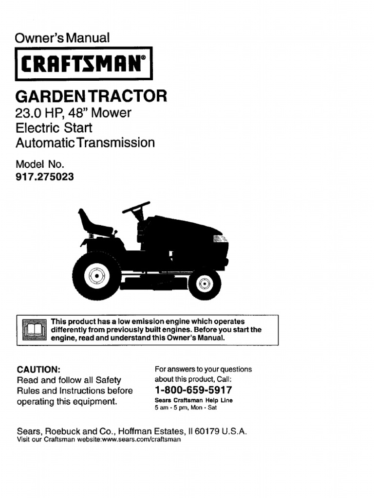 Craftsman 917276781 917276782 917276783 tractor operator manual LAWN TRACTOR 200 HP 42 Mower Electric Start Automatic Transmission Warranty. View download of more than 9487 Craftsman PDF user manuals service manuals operating guides. Leon download the manual from here.