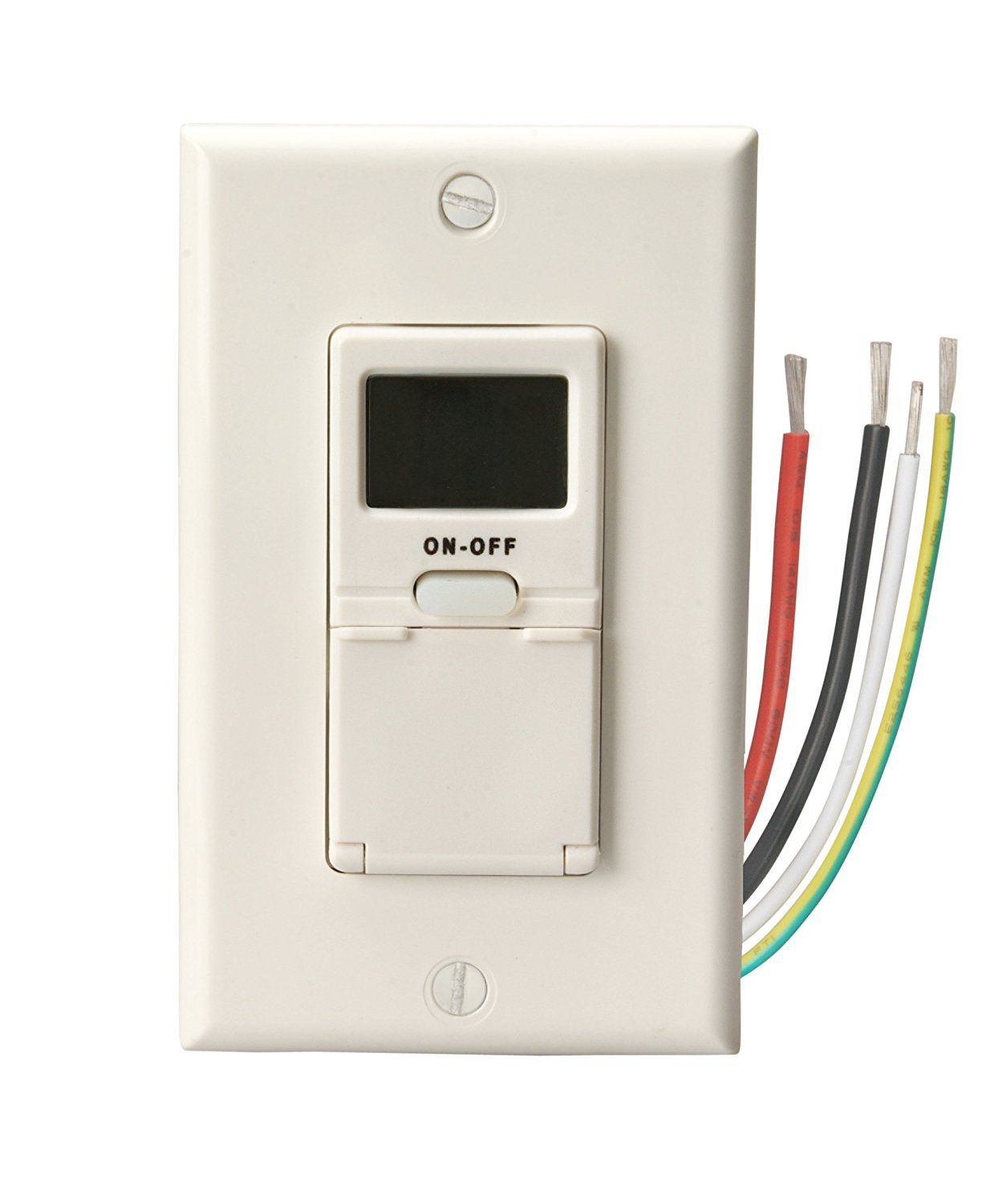 Woods 59018 In-Wall 7-Day Digital Timer White. I was assured by the electrical specialist at my local hardware store that this was an easy installation - just hook up the same colored wires black to black red to red etc and that it would work perfectly. Sleek design mounts flush with standard decorative wall plate not included.