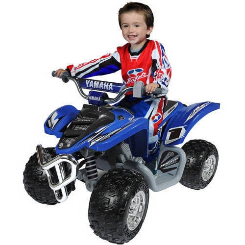5 mph Durable construction with steering wheel column Yamaha Raptor 700R boys ATV ride-on boasts authentic Raptor design Raptor sound controls Signature race graphics Wheels. The Yamaha Raptor ATV 12-Volt Battery-Powered Ride-On can help provide an active child with hours of fun and physical play. This ATV 12-Volt ride-on has colorful authentic Yamaha graphics throughout and is sized for young riders.